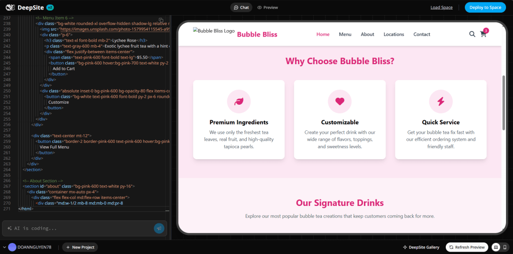 Entrepreneurs and small business owners can leverage DeepSite V2 to create professional websites without hiring developers. By inputting prompts like “Design a website for a bubble tea shop” users receive a responsive, visually appealing site tailored to their business needs.